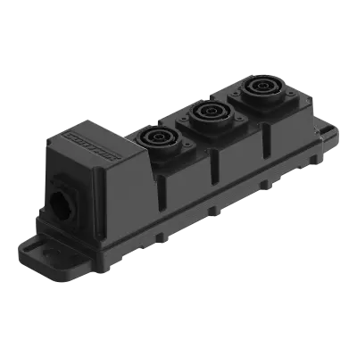 Meet the CONTRIK Power Bar – an ultra-compact powerCON TRUE1 distribution box engineered for professional use. Its innovative injection-molded housing delivers outstanding mechanical protection while maintaining excellent cost-efficiency. Designed to be both rugged and space-saving, the Power Bar is the perfect solution for use in demanding and harsh environments.